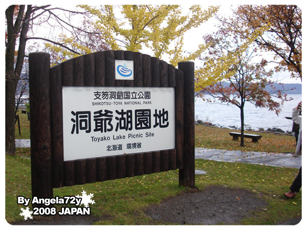 在洞爺湖,可以看到遠遠的山頭已經佈滿白雪了