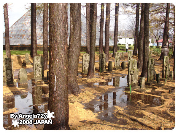 中間還會經過他們修行的靈場,一開始沒看到正面的神像,會以為是一堆墓碑在那邊,因為我的日文破破看不太懂,所以是用猜的,在靈場中有很多不同的神像,當中又以菩薩、明王、彌陀、大日、阿閃、藥師、文殊、普賢、地藏、彌勒、觀音、勢至、虛空藏共十三尊神像為主。古早的日本人,感覺滿重視內心的修行,像日劇婆媳大戰當中,古早派的婆婆就提議要媳婦去瀑布修行。在羊蹄湧水吹出公園的靈場中,看著高聳的樹木,感覺真的滿有心神寧靜的感覺。