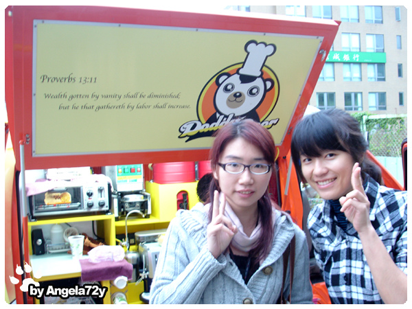 之前就有在她的部落格上看過熊餐車的照片,還在捷運站上面往旁邊停車場的方向看,很清楚的就可以看到他們家的熊餐車,橘色的很鮮豔很可愛。西湖捷運站旁邊的停車場有很多餐車攤販都在那邊營業,我今天超早,七點半多就到那邊了,很多攤販都還在準備,不過他們更早到,已經就緒得差不多了。