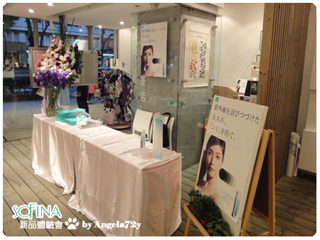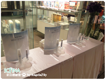 旁邊展示了很多組今天的主角"Sofina Whitening瀅白系列"...後面的背景有書,真的是書店ㄟ